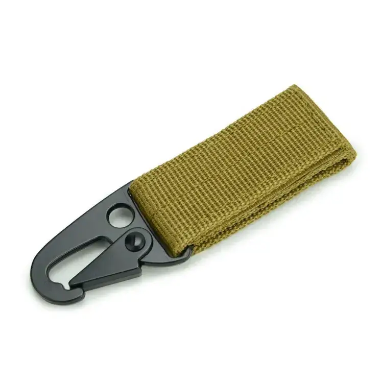 Denna taktiska bältesklämma är ett kompakt och mångsidigt verktyg för att organisera viktiga föremål som nycklar, ficklampor eller små verktyg på din taktiska utrustning. Den höghållfasta metallkroken säkerställer tillförlitlig fastsättning, medan den slitstarka nylonremmen säkrar den till MOLLE-system.