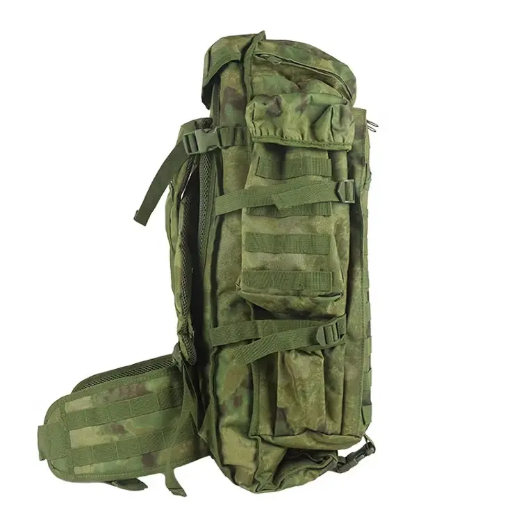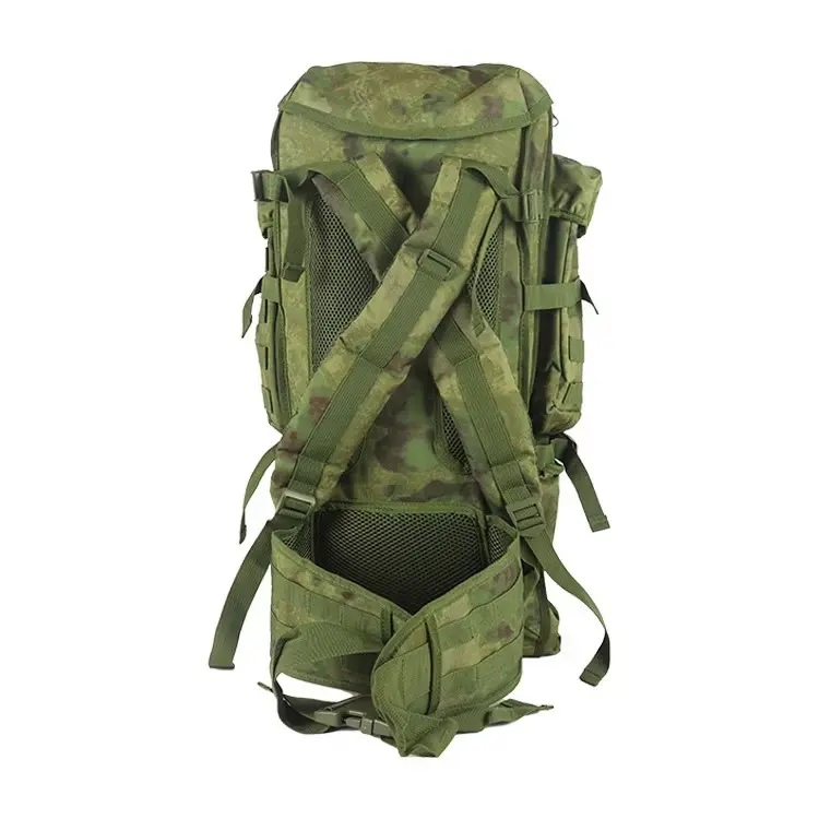 This large-capacity digital camo tactical rucksack features full MOLLE webbing, mesh back ventilation, integrated side pouches, and a cross-harness strap system—engineered for extended field operations, multi-day expeditions, or heavy gear transport.